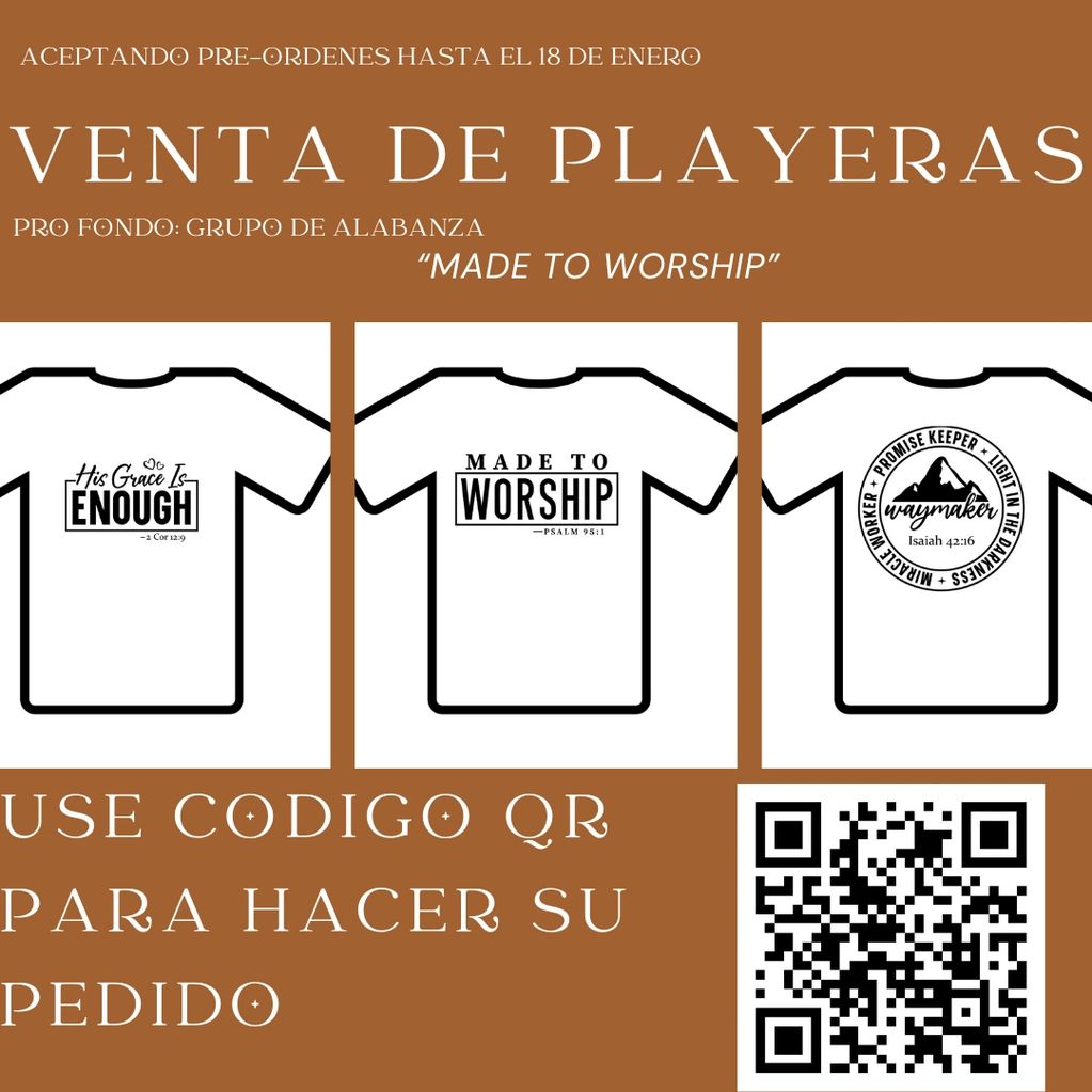Venta de Playeras, Pro-Fondo Grupo de Adoración y Alabanza, Made to Worship,